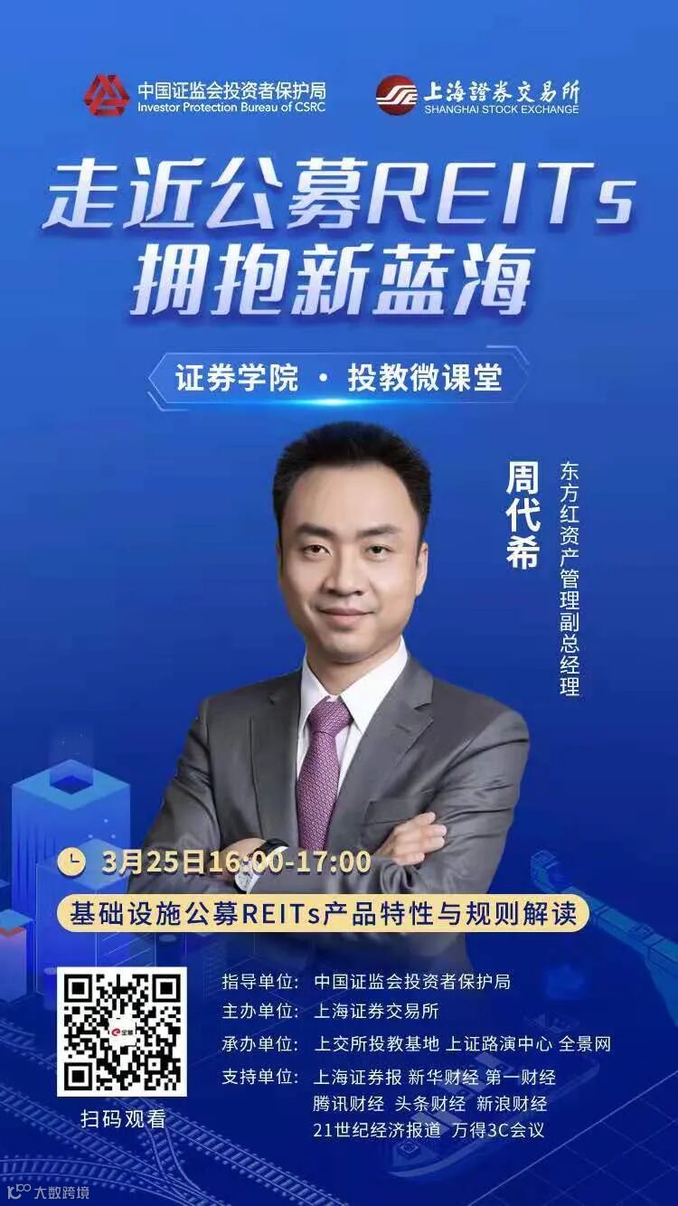 3月25日(周四)16:00,东方红资产管理副总经理周代希将与您分享《基础设施公募REITs产品特性与规则解读》。