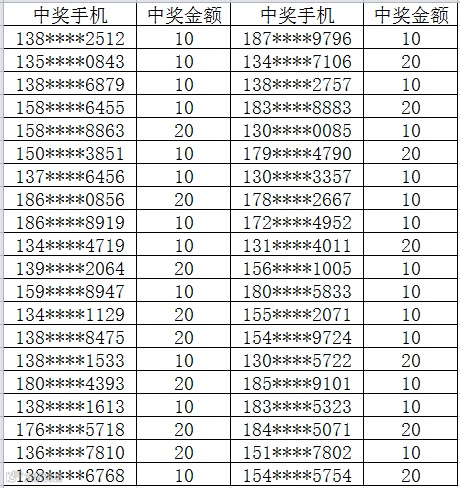 3、中奖金额将于每周五以话费的形式发放到您的中奖手机,届时敬请留意短信