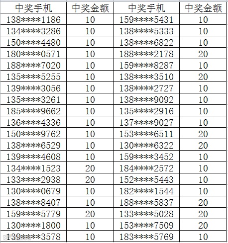 3、中奖金额将于每周五以话费的形式发放到您的中奖手机,届时敬请留意短信