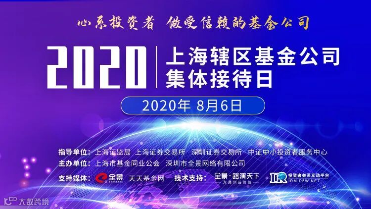 由上海市基金同业公会和全景网共同主办的2020年上海辖区基金公司集体接待日”活动将于今天(8月6日)下午14:00-16:30举办,本次接待日活动主题为“心系投资者,做受信赖的基金公司”,活动汇聚上海辖区公募基金的公司高管+投研专家+市场负责人+资深客服,全方位解答投资者关心的各类话题。