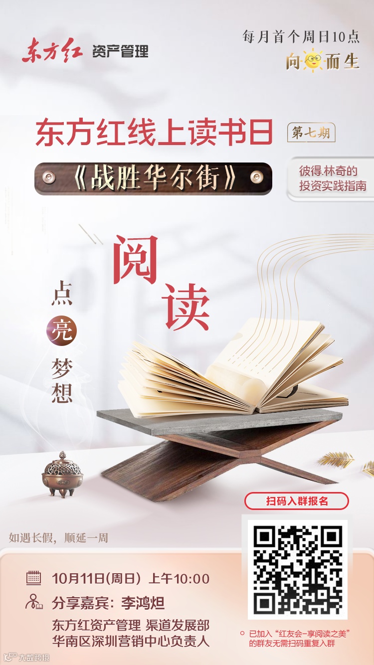 阅读点亮梦想。秉持共享投资之美的初心,东方红资产管理发起“东方红线上读书日”系列活动,每月一期直播分享,旨在与更多喜爱投资、喜爱阅读的朋友探讨资本配置之道,分享长期价值投资心得。