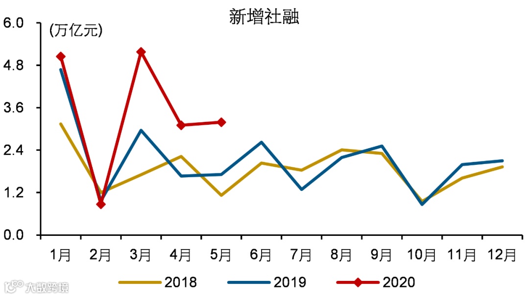 5月,新增社融3.19万亿元,同比多增1.48万亿元,连续3个月远高于去年同期;分项来看,政府债券、信贷和企业债券为主要贡献项,或主要缘于稳增长下基建发力带动的融资需求修复等。