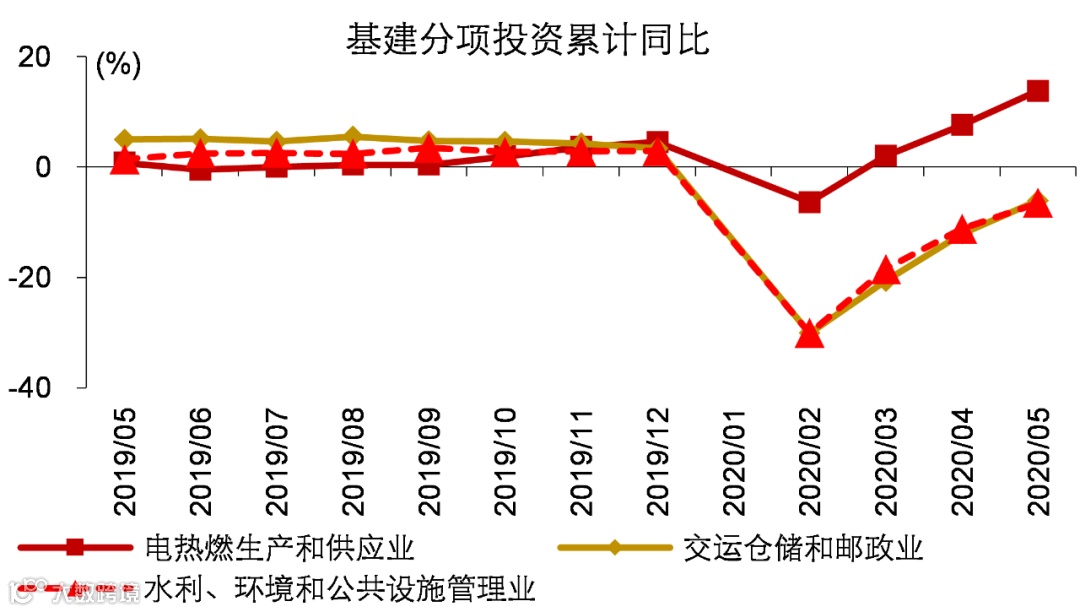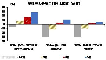 1-5月基建投资累计同比负增长3.3%,较1-4月回升5.5个百分点,基建投资单月同比快速回升6.1个百分点至10.9%,自2018年防范隐性债务风险以来重新回到两位数的增长。