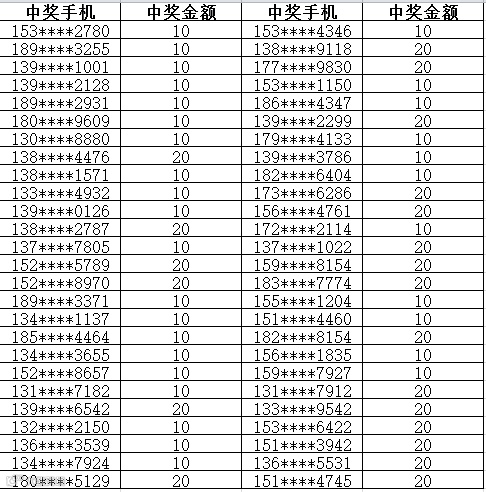 3、中奖金额将于每周五以话费的形式发放到您的中奖手机,届时敬请留意短信