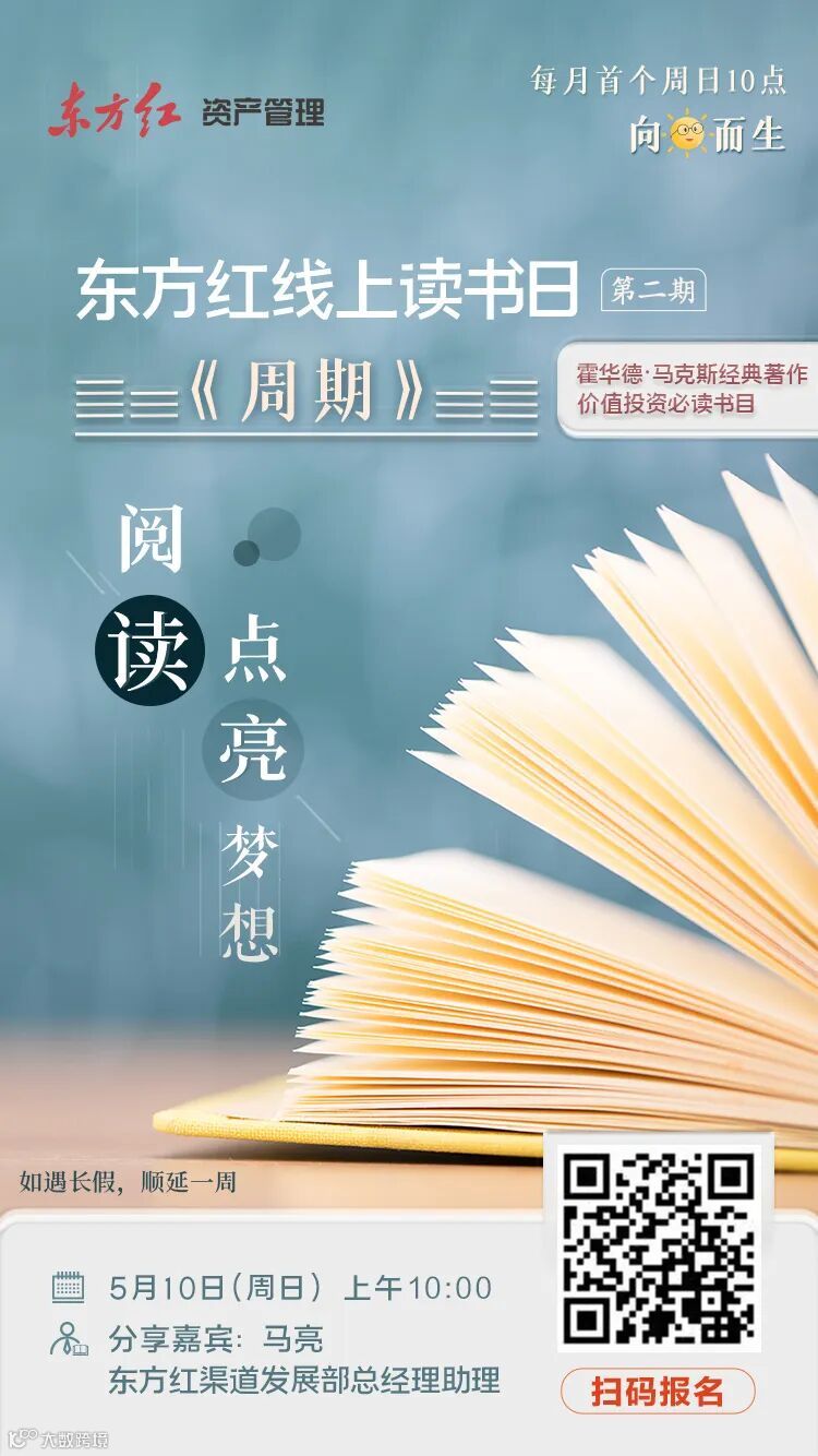 阅读点亮梦想。秉持共享阅读之美的初心,东方红资产管理发起“东方红线上读书日”系列活动,每月一期直播分享,旨在与更多喜爱投资、喜爱阅读的朋友探讨长期坚持的价值,分享包含但不限于在投资、哲学或者心理学等层面的感悟与心得,努力在正确的方向上坚持做长期正确的事情,做人生的长期主义者。