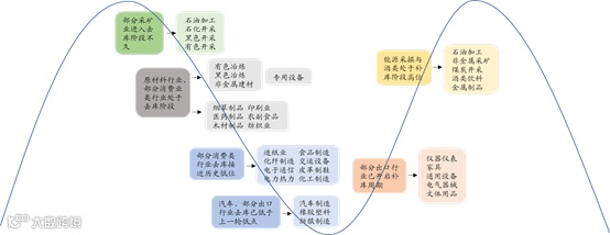 从行业出发,不同产业链的细分行业,库存见顶的时点也各不相同。去库存领先的行业,在补库环节也往往领先。与出口、消费相关的行业多数在2017年提前见到库存顶部;地产与制造业投资链条上的行业则多于2018年见顶。