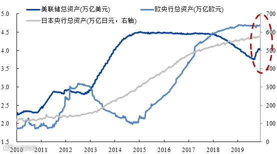 2019年年初以来,全球各国在货币宽松的道路上“加速奔跑”。从地区来看,欧洲方面,欧央行9月下调存款便利利率10BP至-0.5%,同时宣布11月起以每月200亿欧元的规模重启QE;美国方面,继9月16日美联储时隔10年重启回购,10月11日美联储宣布再次延长回购计划至2020年1月,同时自10月15日起以每月600亿美元的速度扩张资产负债表,并至少持续到明年二季度。