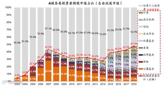 外资、银行理财、保险等是未来的主要的增量机构资金,在此背景下,机构投资者逐年抬升的趋势不可逆。A股市场将逐步形成由长久期配置型资金占据主导的格局,简单来说,也就是机构将取代散户、居民间接持股将取代直接持股。