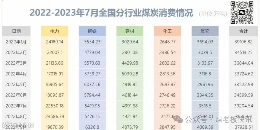 5.下游各行业煤炭消费情况、产煤大省煤炭流向、煤炭汽运+铁运+进港情况、电力生产情况、火电发电情况、化工行业生产情况;