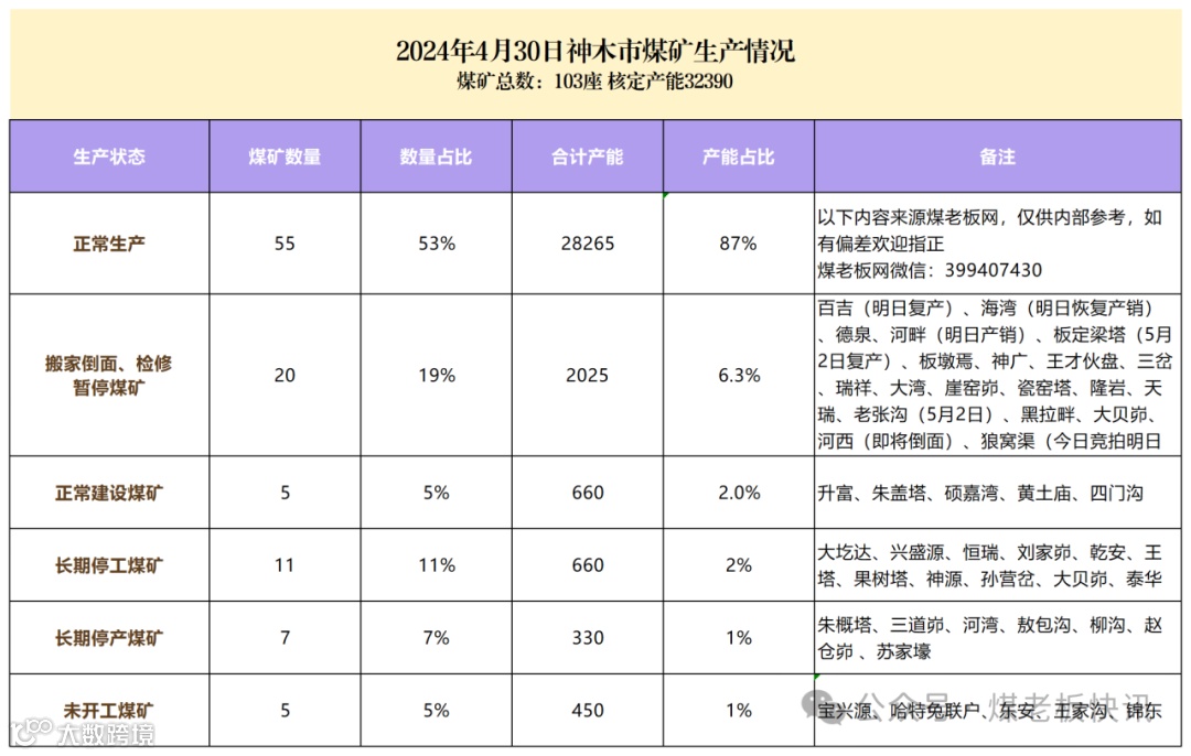 6.全国原煤生产情况、分省原煤生产情况;陕西省、榆林市、神木市原煤生产、销售、库存、煤矿开工率等情况;