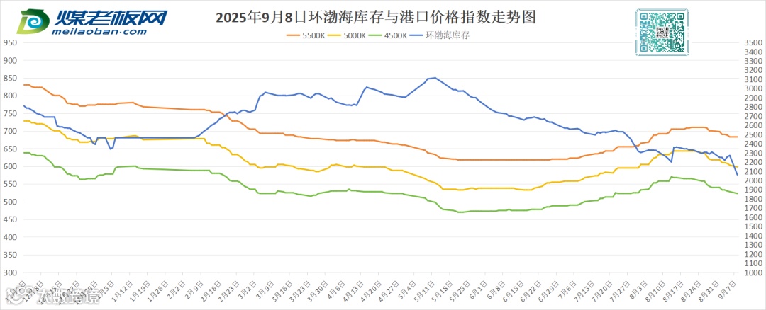 四门沟煤矿:2025年9月8日上午10点起:所有煤种↑5