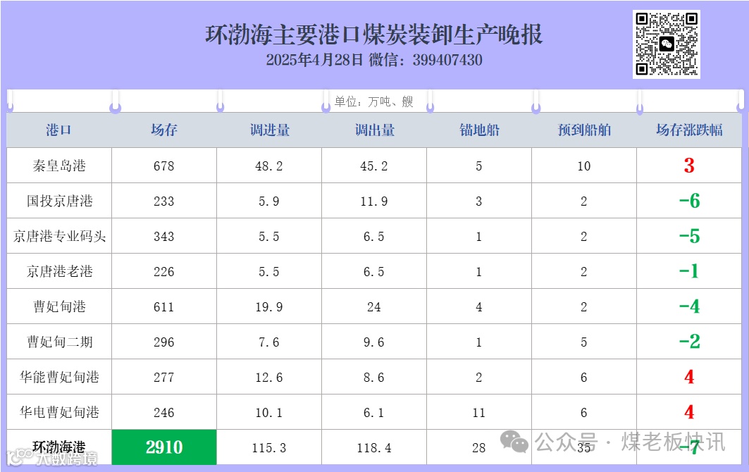 海湾煤矿:2025年4月28日早上8点30起现金售价:化工籽↓10
