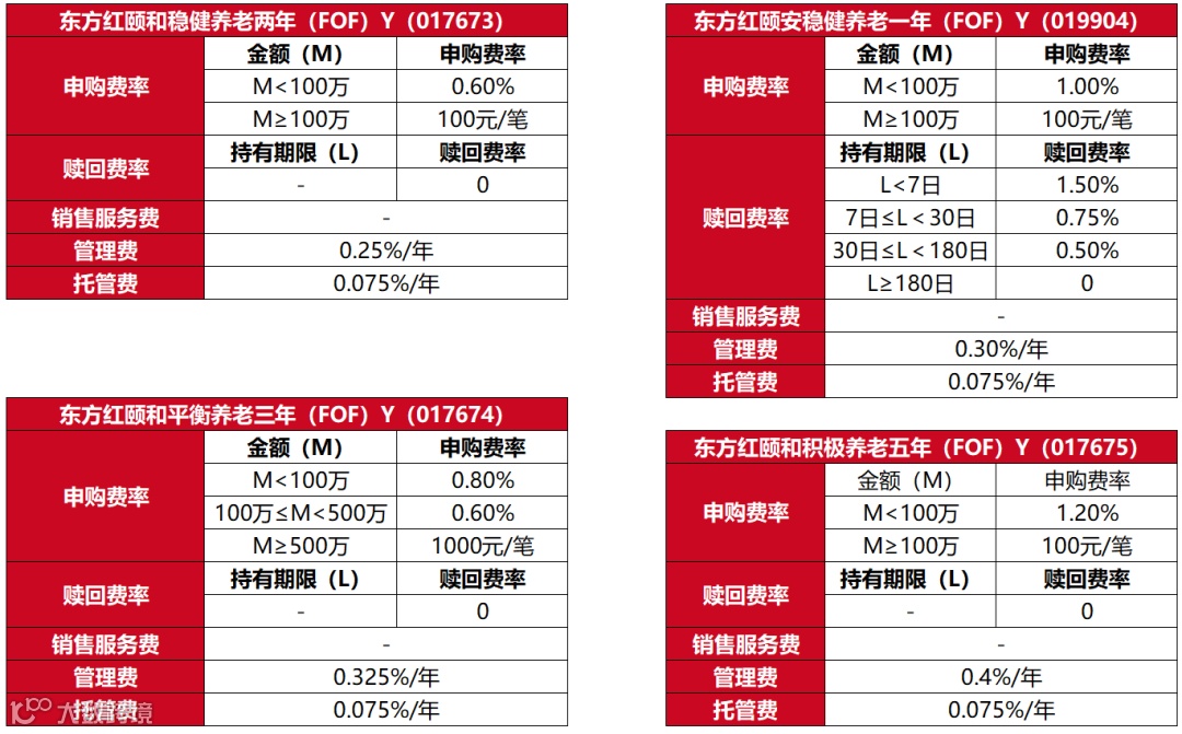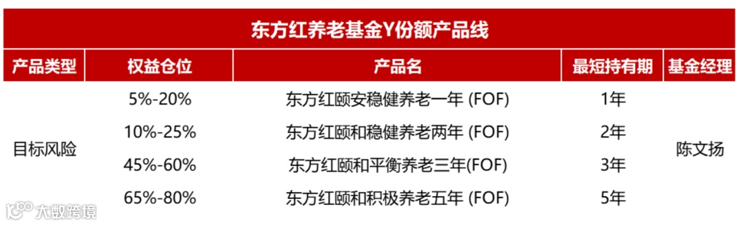目前,东方红资产管理目前已有4款养老目标基金增设了Y份额,覆盖稳健、平衡、积极不同风险等级,搭配一年、两年、三年、五年不同持有期,能够满足不同投资者的养老需求。