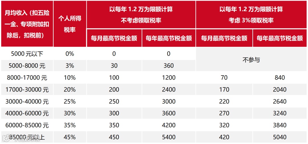 图:各档次税率对应的节税金额