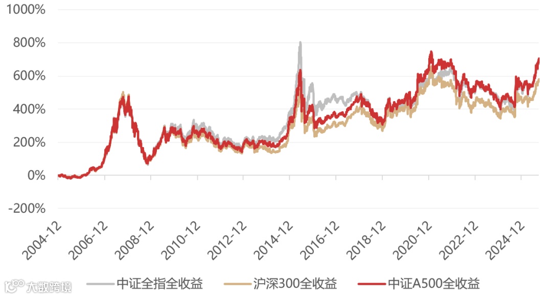 数据来源:Wind,截至2025.10.31,中证全指全收益、沪深300全收益、中证A500全收益代码分别为H00985、H00300、000510CNY010