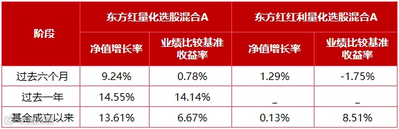 注:数据来源于2025年二季报,截至2025.6.30。根据2024年年报,东方红量化选股混合A自2024.5.21成立至2024年底,净值增长率为4%,同期业绩比较基准收益率为5.84%。