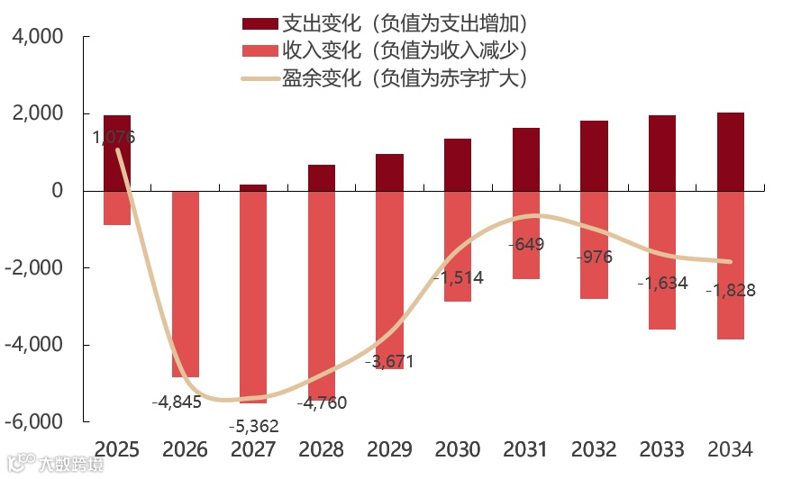 图:大美丽法案每年形成的赤字变化(亿美元)
