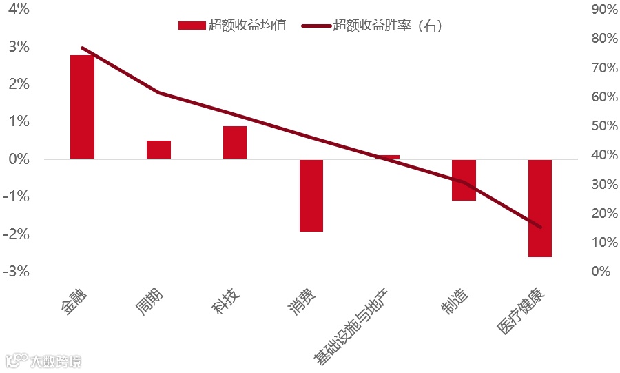 数据来源:Wind,东方红资产管理,图为相对万得全A的胜率和超额收益,历史数据不代表未来表现