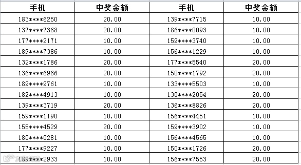 3、中奖金额将于每周五以话费的形式发放到您的中奖手机,届时敬请留意短信