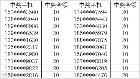 3、中奖金额将于每周五以话费的形式发放到您的中奖手机,届时敬请留意短信