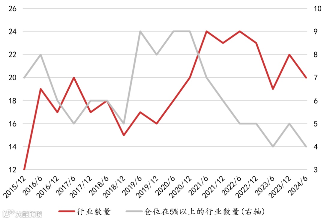 数据来源:基金定期报告,仓位指报告期末公允价值前十名股票占基金资产净值比,所使用行业分类为申万一级行业