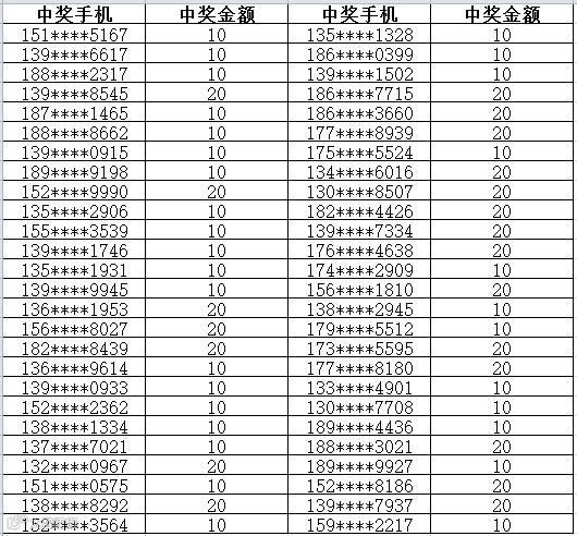 3、中奖金额将于每周五以话费的形式发放到您的中奖手机,届时敬请留意短信