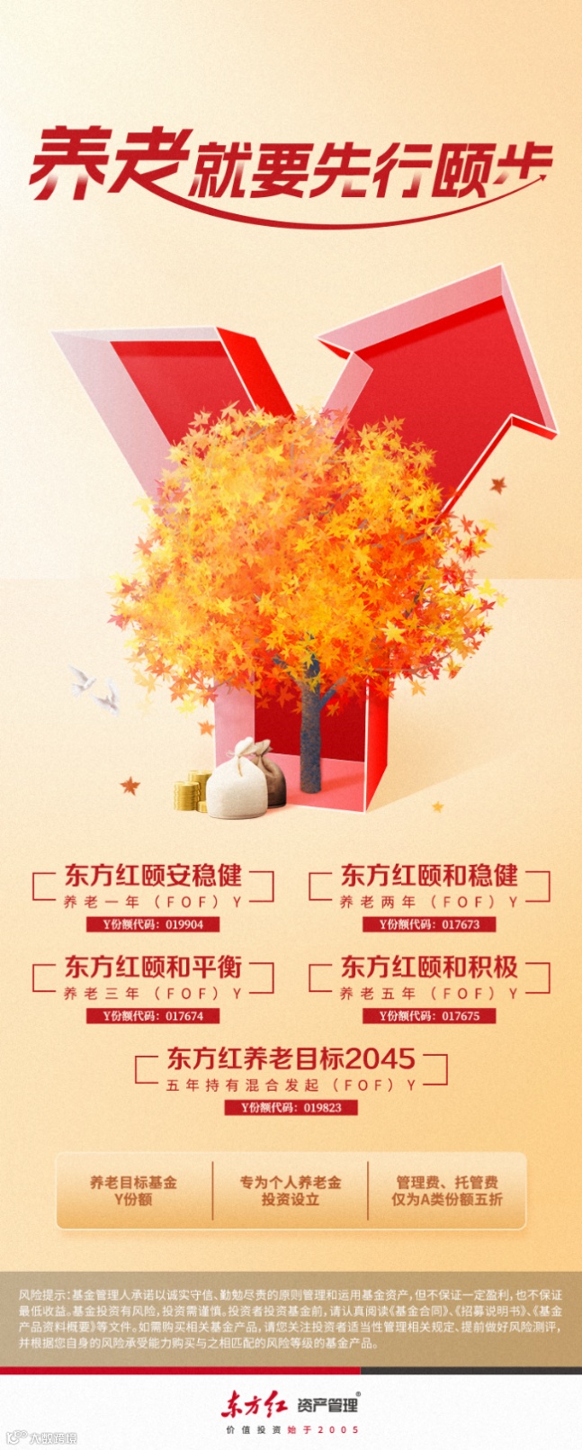 注:权益仓位指的是占基金资产比例。目标日期前,东方红养老目标2045五年持有混合发起(FOF)根据下滑曲线的设定确定权益类资产的配置比例,具体以产品招募说明书为准。