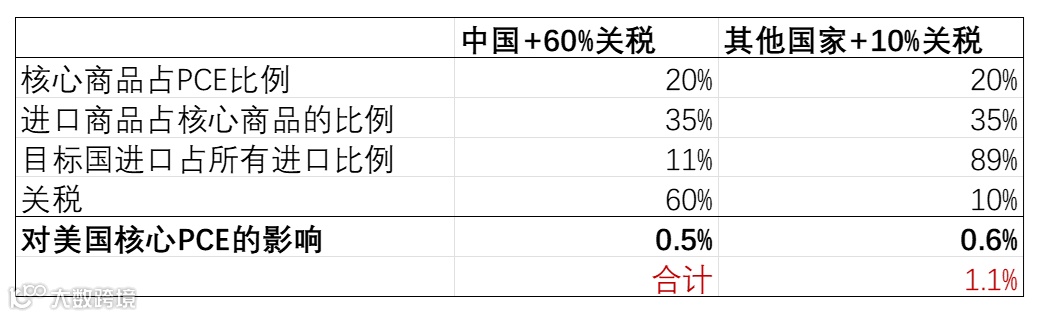 表:特朗普加征关税对美国核心通胀的影响估算