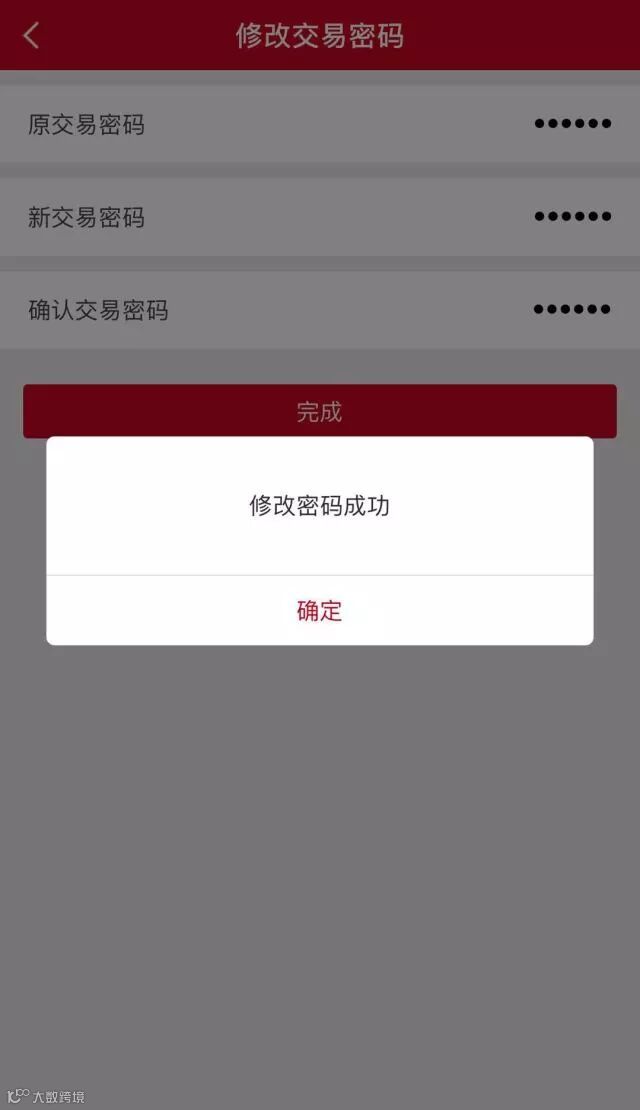 进入“设置”页面,点击修改交易密码,依次输入原交易密码,新交易密码,确认交易密码,交易密码即可修改成功。