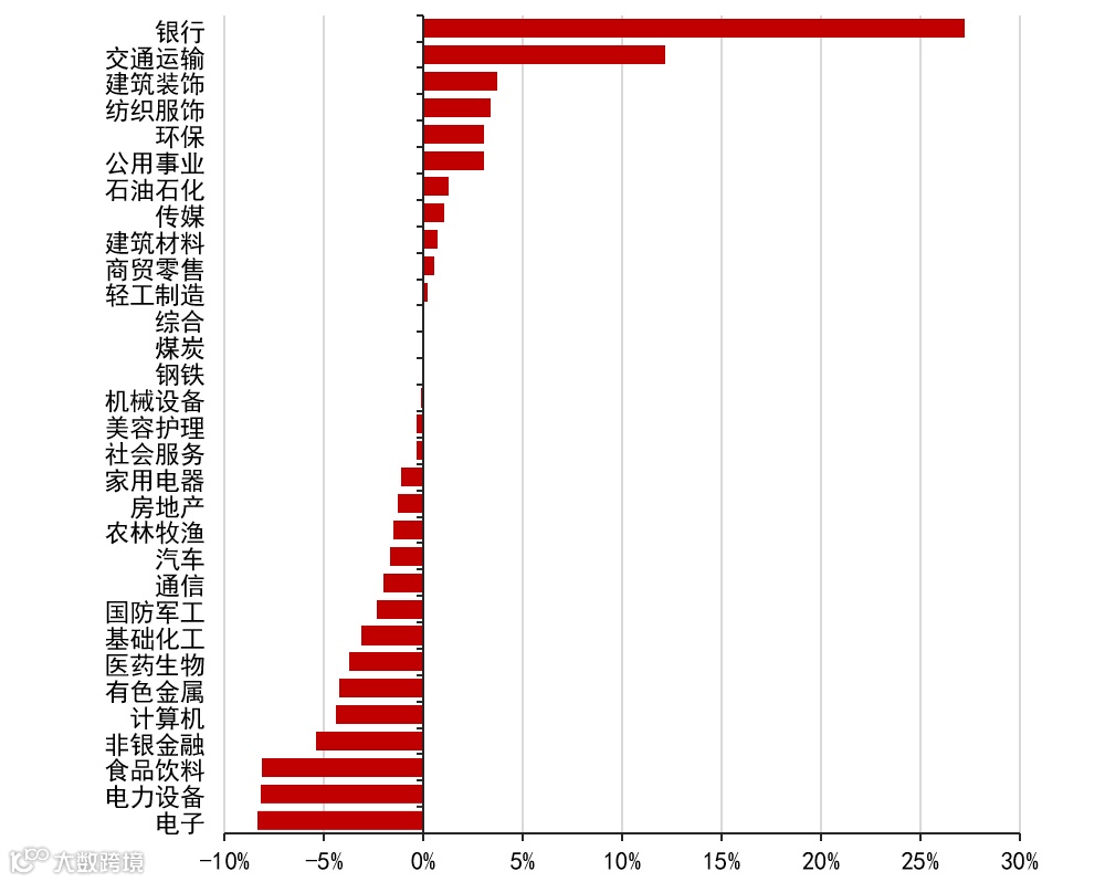从行业分布可以发现,相较于中证800指数,东证红利低波指数明显超配银行、交通运输、建筑装饰、纺织服装等行业偏价值和防御性板块,同时明显低配电子、电力设备、食品饮料、非银金融、计算机等成长性较强或估值较高的板块。行业分布上的倾斜,使得东证红利低波指数具有天然的防御价值属性。