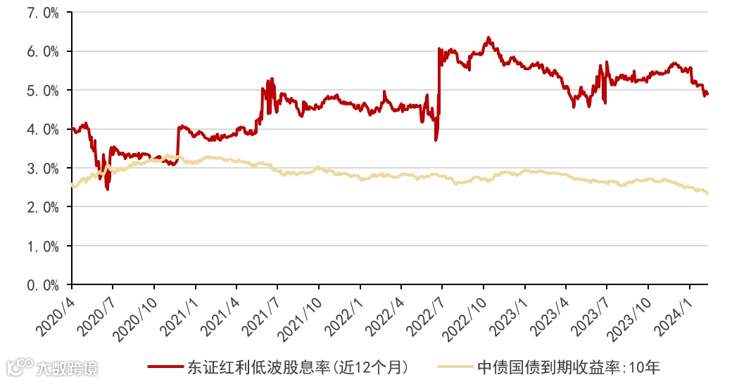 从长期看,即便红利类资产近期已经有一定的表现,从估值、股息率等角度来看,东证红利低波指数目前并未行至高位。