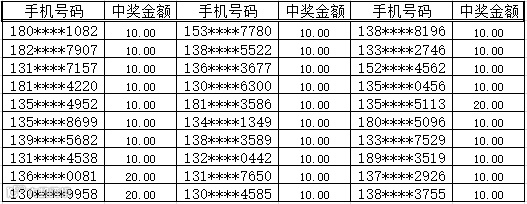 3、中奖金额将于每周五以话费的形式发放到您的中奖手机,届时敬请留意短信
