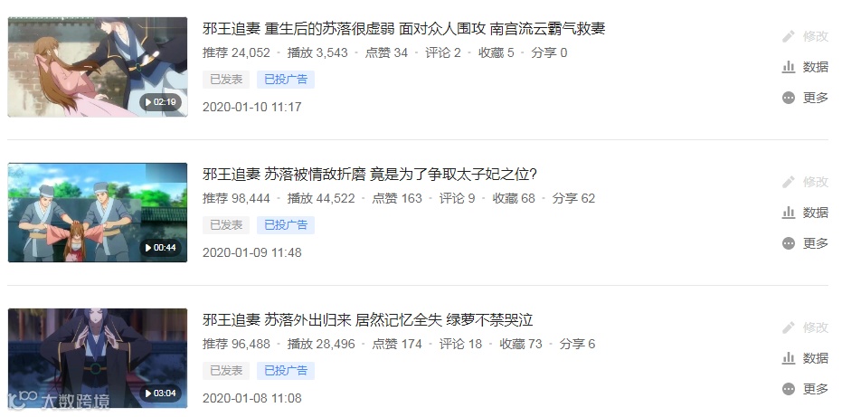 内容:把发现的精彩影视片段和动漫动画整理通过剪辑后发布平台,完善丰富平台内容以此来吸引更多的用户来提升流量。