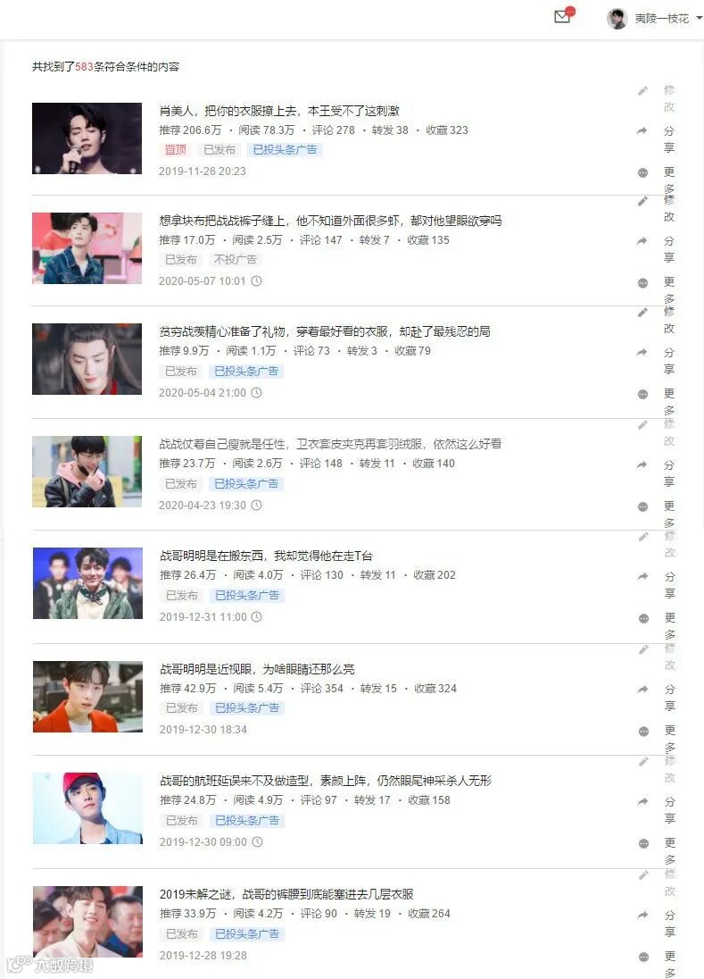 内容:主要围绕话题明星肖战做文章,创作更新其最近新的行程和近况。以蹭热点的形式,坚持产出关于娱乐明星肖战的垂直的优质内容,将其最新的动态以简洁的文章、高质量的精修美图和幽默视频的方式呈现出来。