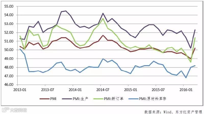 3月中采PMI结束了连续7月的跌势,回到了荣枯线之上,超出了市场的预期。分项来看,主要是生产、新订单以及原材料库存的上升带动,一定程度上反应出基本面的企稳隐含了供给和需求的双向回暖。1-2月工业企业利润同比增速由负转正,更多源于成本的降低和产能的去化。