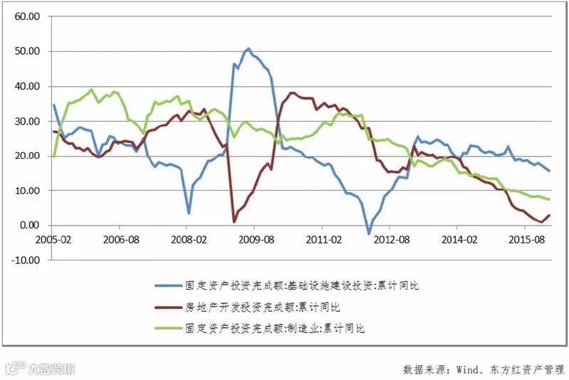 投资增速的回升主要体现为房地产投资增速的反弹,基建和制造业投资增速仍处于下滑状态。房地产投资增速的反弹以及新开工增速的回升具有一定的惯性作用,因此短期内仍然具有持续性。但中长期来看,我们认为房地产投资增速反弹幅度有限,其主要原因还在于行业拐点已过,人口的结构性变化以及三四线城市库存去化压力仍大都压制了房地产投资增速的反弹幅度。此外,近期出台的一线城市地产调控政策也将使一线城市的房地产销售有所降温,进而对房地产投资增速有所影响。
