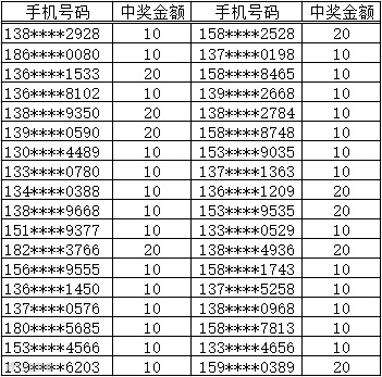 3、中奖金额将于每周五以话费的形式发放到您的中奖手机,届时敬请留意短信