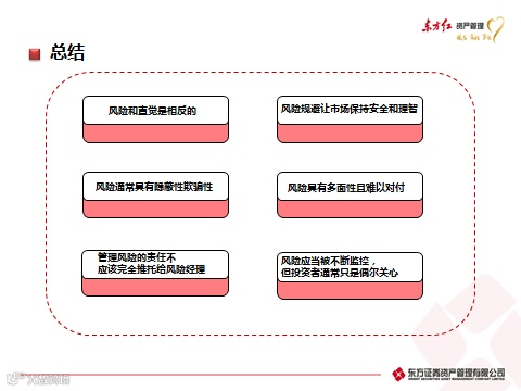 最后,泛泛而论,我想指出尽管风险控制必不可少,以回避风险为目标是不合时宜的。原因很简单:回避风险等于回避收益。虽然承担风险不一定有利可图,不承担风险一定无利可图。