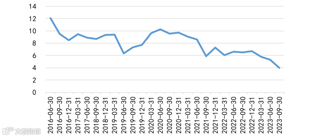 从东方红京东大数据混合A的持仓数据来看,在2021年上半年之前,其个股最大持仓大部分时间都在8%以上,而在近两年其最大持仓已经降低至6%左右的水平,最近一期的个股最大持仓更是低至4%。这个变化体现了周云更加重视组合分散和投资纪律,即便这两年部分股票的估值已经降到非常低的位置,也严格遵守投资纪律。