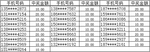 3、中奖金额将于每周五以话费的形式发放到您的中奖手机,届时敬请留意短信