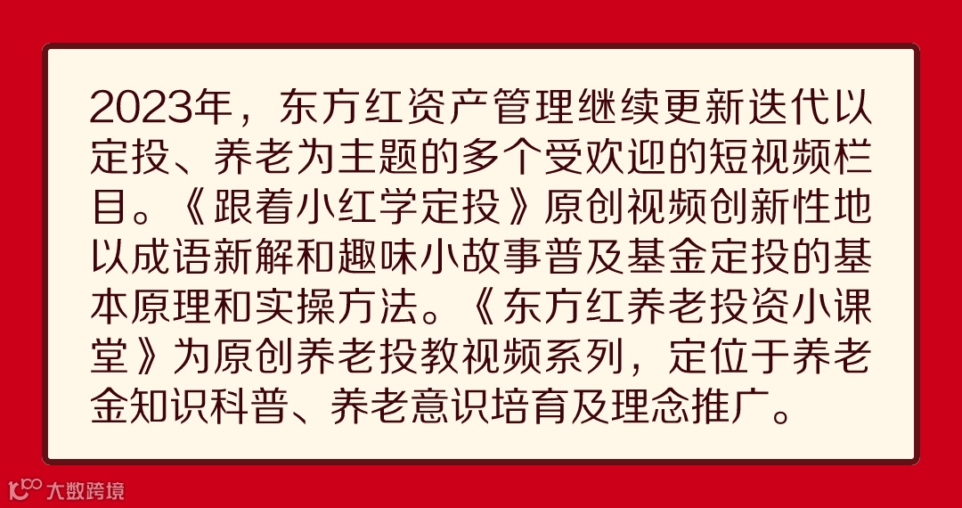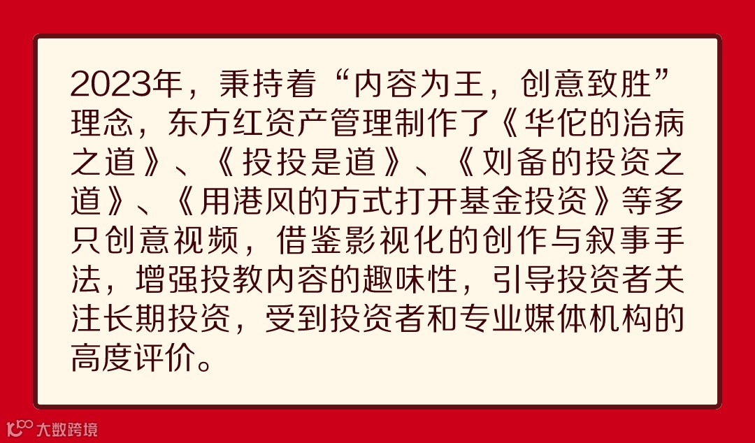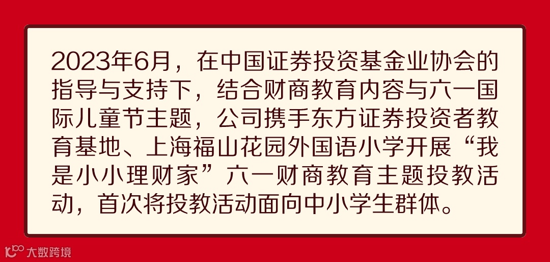 随着投资者教育的不断深化,投教工作不再是简单的知识传递,而是成为投资者与资产管理机构之间重要的链接纽带,承载着知识互通、陪伴引导和共同经历风雨和彩虹的信任。市场跌宕起伏,为了更好地陪伴投资者穿越周期、穿越迷雾,东方小红们努力深耕陪伴内容,探索传播形式,持续开展形式多样、喜闻乐见的投教活动,开发制作生动有趣、创意便利的投教产品。