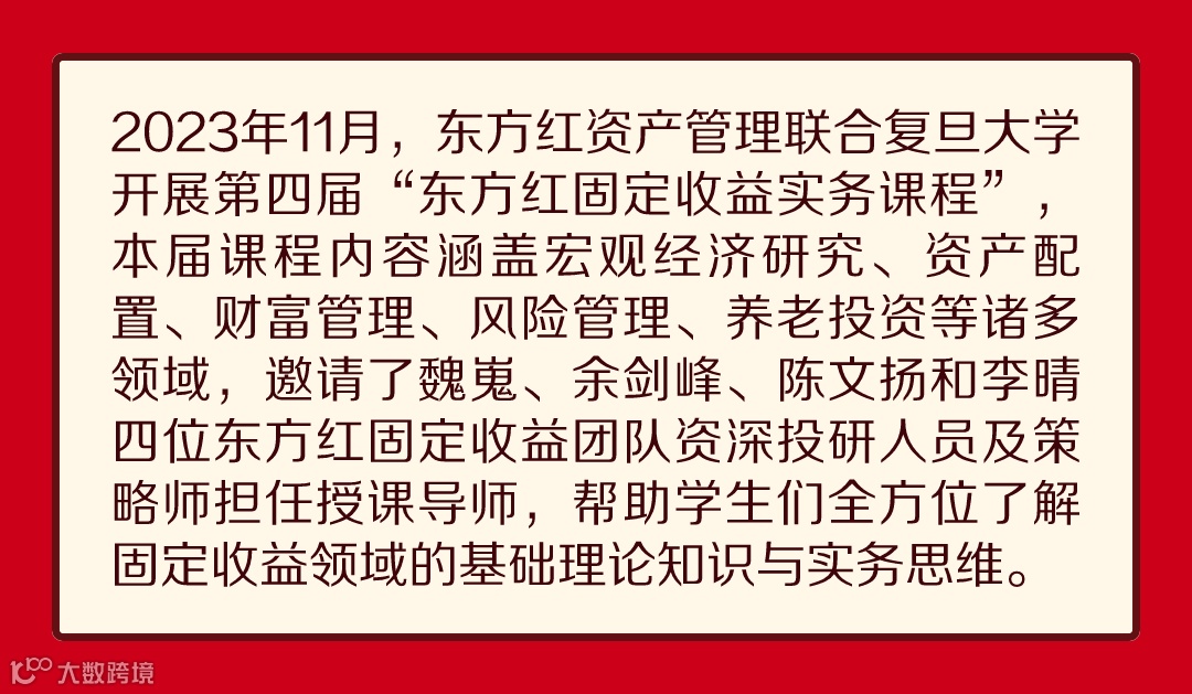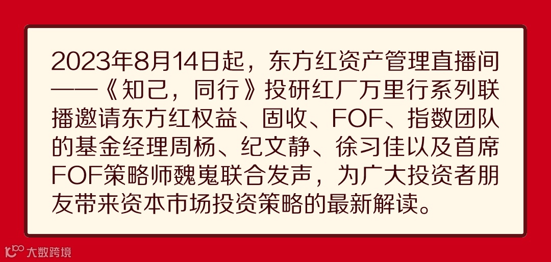 数据来源为东方红资产管理。基金有风险,投资需谨慎。本材料中所述内容仅供一般参考,不代表东方红资产管理的任何意见或建议,东方红资产管理不对任何依赖于本材料任何内容而采取的行为所导致的任何后果承担责任。本材料所载信息截止至【2023】年【12】月【31】日有效,前瞻性陈述具有不确定性风险。本材料知识产权归东方红资产管理所有,未经允许请勿转发、转载、截取或完整使用本材料所载内容。