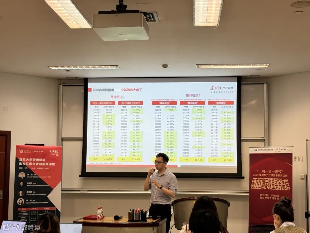 2023年11月,在中国证券投资基金业协会指导下,东方红资产管理深入大学校园开展“一司一省一高校”投资者教育活动,与复旦大学管理学院合作推出第四届“东方红固定收益实务课程”。