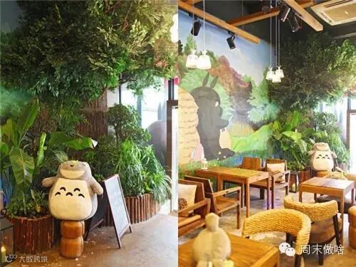 在大白(●—●)之前的暖男代表是谁?当然是宫崎骏大师笔下的龙猫!小怪第一次来这家店时,正好遇见店主。店主和很多80后一样,被宫崎骏的多部动画作品中的生命力和想象力打动,于是开了这家以森林为主题的咖啡馆。