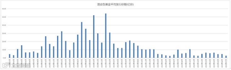 通过上面混合型基金平均发行份额的柱状图,我们不难发现,投资者追涨杀跌的行为非常明显。在经历2018年市场持续低迷后,2019年1月和2月混合型基金平均发行份额分别为4.65亿和3.44亿;不过在经历了沪深300指数在2019年1月、2月分别大幅上涨6.34%和14.61%后,3月和4月混合型基金平均发行份额暴涨到10.92亿和15.50亿;同样在市场持续低迷一段时间后,2022年11月、12月混合型基金平均发行份额分别为3.02亿和2.63亿;而在经历2022年11月、12月和今年1月的上涨后,混合型基金平均发行份额稳定在5亿左右。(数据来源:Wind;统计区间:2019年1月1日—2023年7月13日,历史数据仅供参考,不代表未来表现。)