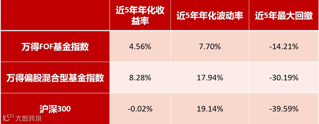 从大家关心的收益表现来看,FOF基金能较好地兼顾收益与波动。代表FOF基金整体表现的万得FOF基金指数(代码885071),在过去5年间(2018.06.01-2023.05.31),在较低的年化波动率与回撤下,取得了较为不错的收益水平。