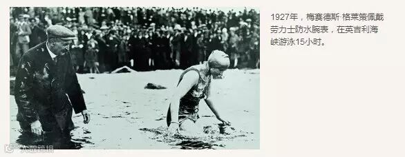 在荣获“天文台表奖”之后,劳力士证明了手表可以和怀表一样精准。而威斯多夫并未满足于现状,他的工程师成功地设计出一种完全防尘、防水的表壳,命名为“蚝式”,并于1926年获得专利。据说威斯多夫用餐时点了牡蛎,可他怎么也撬不开,于是以“蚝式”来命名这种外壳。另一个版本的故事是,劳力士一直苦于寻找将发条和外壳连接处密封的方法,还是一只受伤的、嘴里含着珍珠的牡蛎给了他们启发。不管这个名字有何渊源,这都是一个绝妙的主意,因为它很好地将牢固性和高品质结合在了一起。为了推销这种手表,威斯多夫在橱窗里放了一个装有手表的鱼缸,鱼儿在其周围游动时,手表也跟着滴答作响。1927年,当他听闻英国速记员梅赛德斯·格莱策打算成为首位横渡英吉利海峡的女性时,他又为她佩戴上了劳力士蚝式表。在海里游了15个小时并到达多佛后,格莱策的手表仍然精准。这对于威斯多夫来说是个莫大的胜利,他买下了伦敦《每日邮报》整个头版来刊登格莱策的壮举,当然还有她佩戴的劳力士手表。