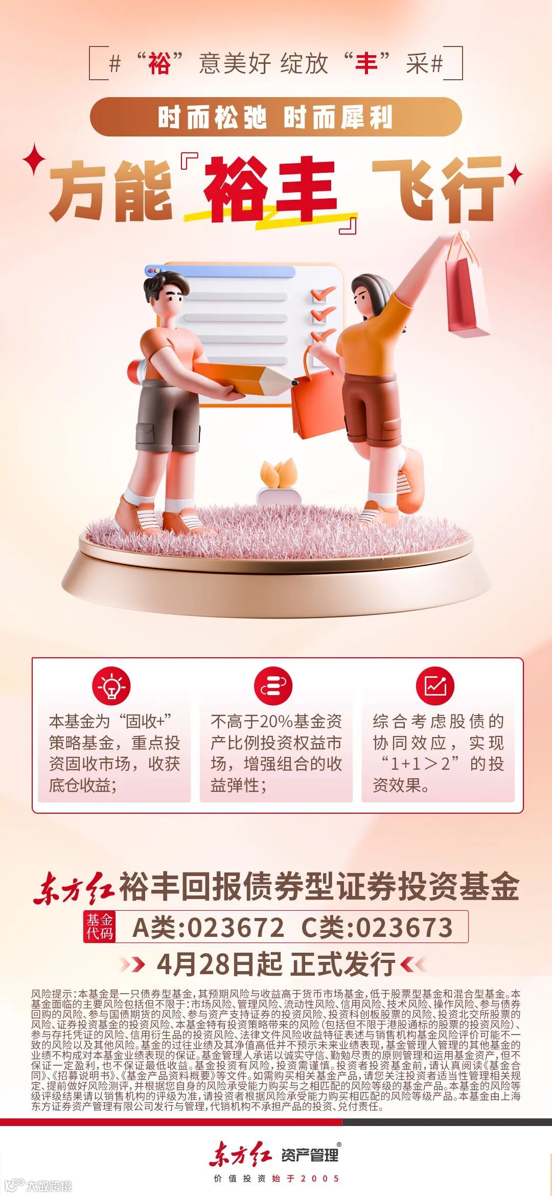 为满足稳健型投资者的理财需求,东方红资产管理推出二级债基——东方红裕丰回报债券型证券投资基金(A类023672,C类023673),4月28日至5月21日发行,助力投资者中长期稳健资产配置。