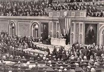 威尔逊总统出席参众两院联席会,