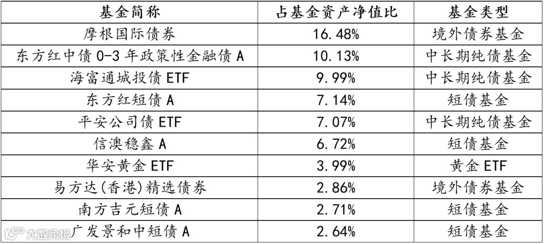 图:东方红欣悦稳健3个月持有混合FOF前十大基金持仓
